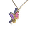 This unique butterfly necklace, featuring opalescent pink and purple wings, is crafted from durable stainless steel for beautiful, tarnish-free wear.