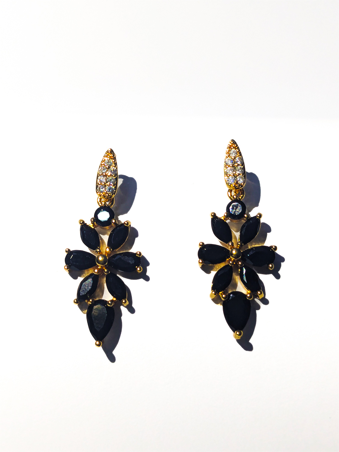 This sustainable gold-tone set, featuring a soft pink opalescent stone and an adjustable ring, offers comfortable, unique, hypoallergenic elegance.